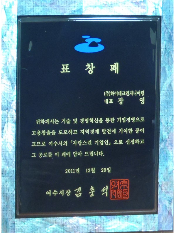 I received a commendation plaque from Yeosu City for promoting employment creation