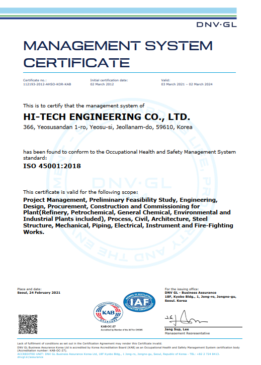 On March 02, 2012, we received ISO 45001 safety and health management system certification