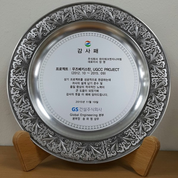 was awarded a plaque of appreciation from GS E&C.