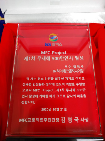 Received a plaque of appreciation from GS Caltex for contributing