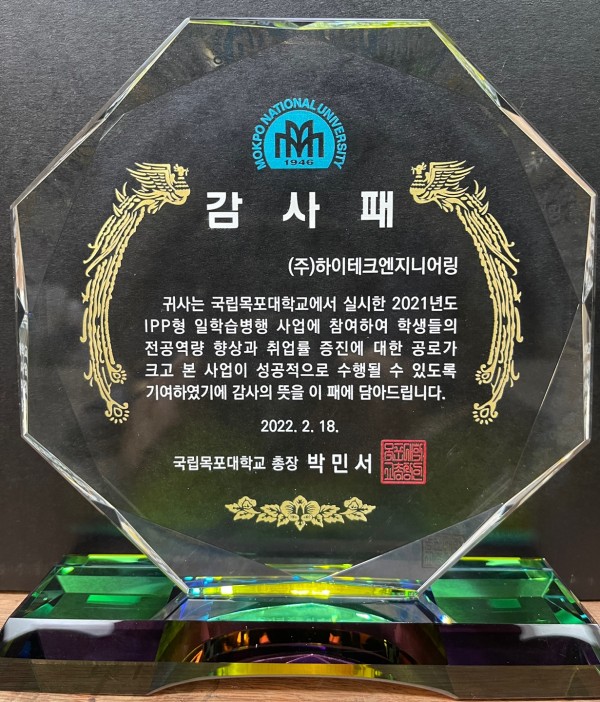 Received a plaque of appreciation from Mokpo National University