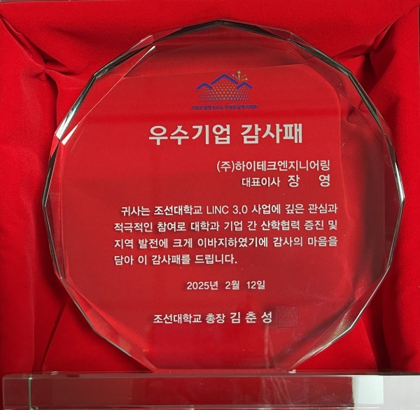 On February 12, 2025, we were honored to receive an Outstanding Enterprise Appreciation Plaque from Chosun University.