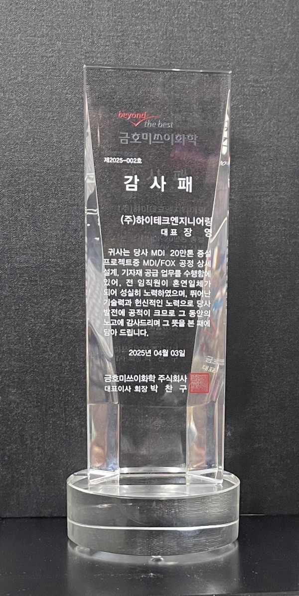 On April 3, 2025, our company received a plaque of appreciation from Kumho Mitsui Chemicals in recognition of