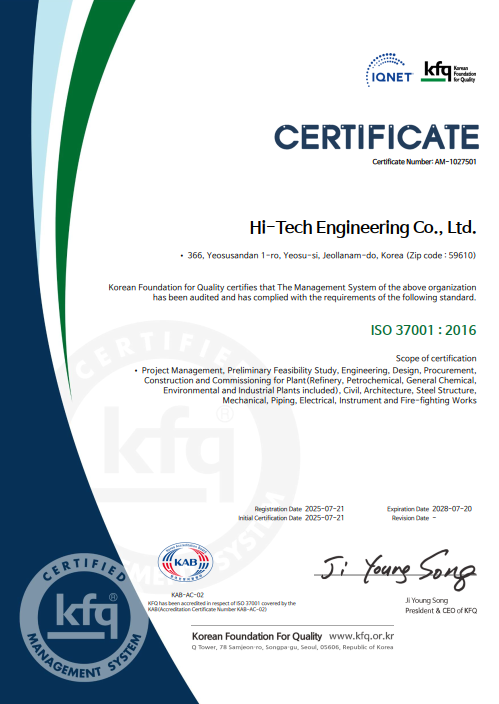 Hi-Tech Engineering has successfully acquired the ISO 37001:2016 Anti-Bribery Management System certification